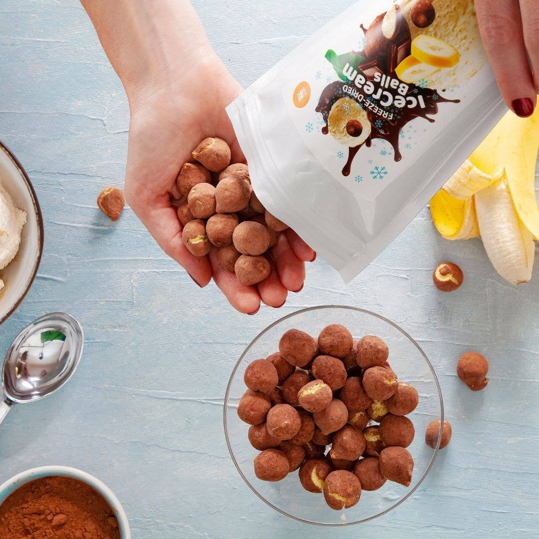 Einführung von NutriBooms gefriergetrocknetem Eis, eine innovative Variante traditioneller Desserts, die ein unvergessliches Geschmackserlebnis bietet. Diese einzigartige Leckerei kombiniert die cremige Güte von echtem Eis mit der Bequemlichkeit und Neuheit von gefriergetrockneten Snacks.