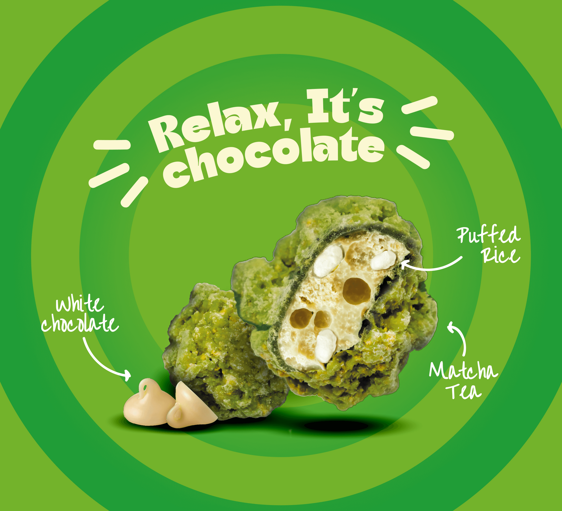 Geschmack weisse Schokolade gepuffter Reis Matcha oder Chlorella